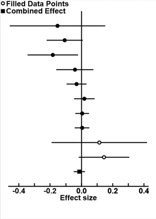replicated "fill" data points, can be calculated. The result Effect Size=-0.0134, and Standard Error=0.0183. The final