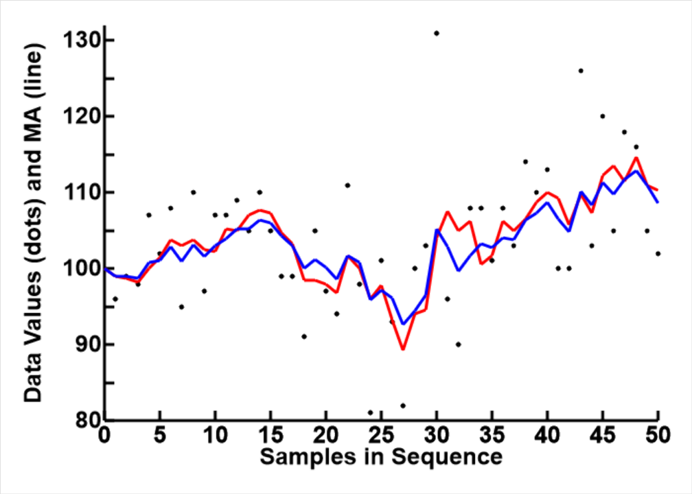 An example, using the Simple Moving Average algorithm (MA), is presented here to demonstrate the procedure and results. Please note that the data are computer generated to demonstrate the procedures, and do not represent anything in reality