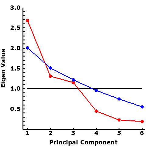 component number, and when the sharp decrease in Eigen values level off (the scree),