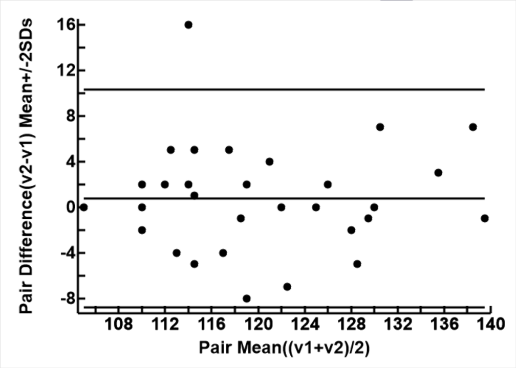 print(paste("Difference (bias, y = v2-v1) mean=",DStr(meany), " SD=",DStr(sdy),