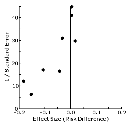 The funnel plot using the example provided is shown above and to the left, and it is obvious that the right side of the funnel