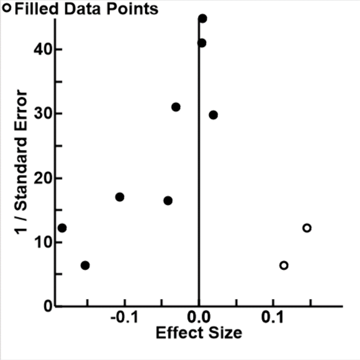Funnel Plot and the Trim and Fill Procedure is a complex and controversial topic, and will be discussed in its own panel in this page.