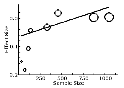 the sample size of the early studies were small and unstable compared with latter studies, and we expect that the Effect Size